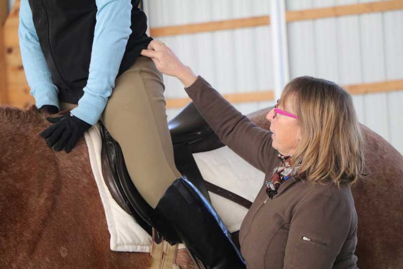 She gives her students an education in anatomy and biomechanics, unmounted exercises that can be practiced anywhere, and a collection of simple riding “fixes” – easy techniques that help a rider feel and remember a new movement and then take it out to their horse.